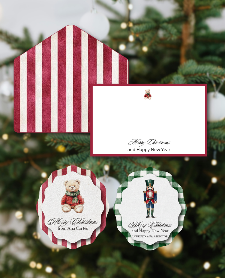 El detalle que vuelve especial tu regalo de Navidad. Este conjunto es la pieza clave para acompañar los regalos de la temporada o para enviar tus mejores deseos de forma elegante y personal.