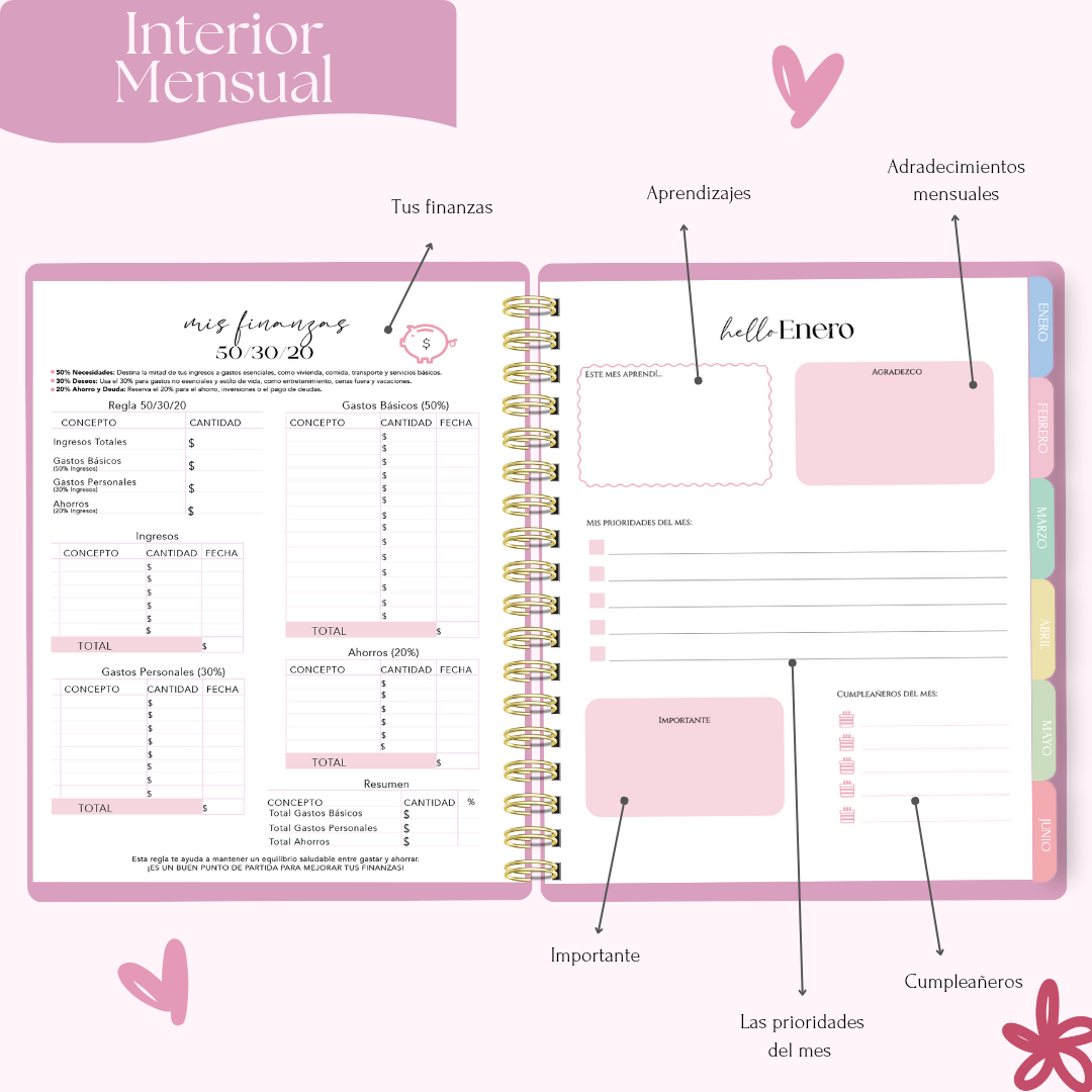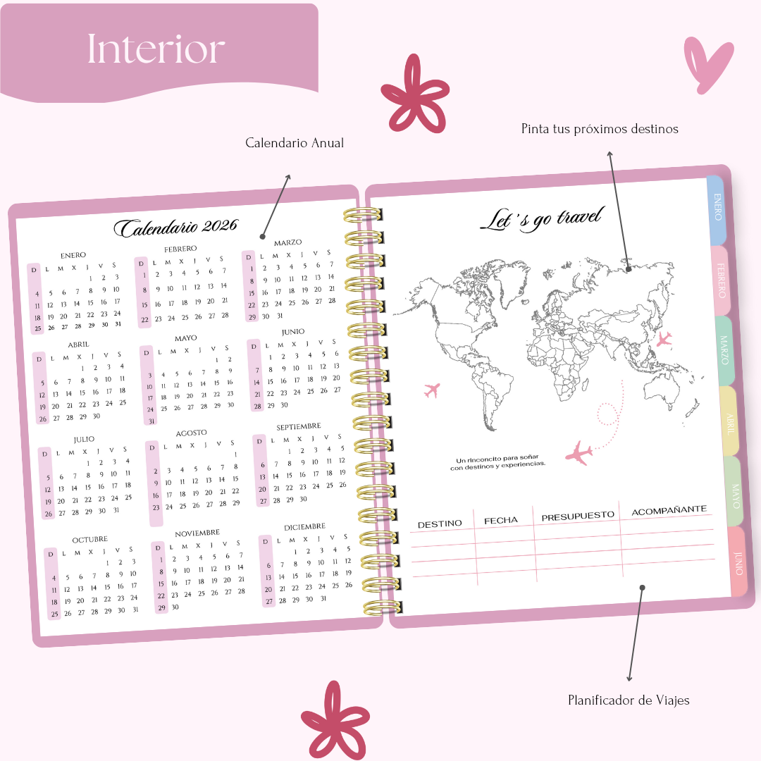 • Interior cómodo y funcional para planear tu 2026: vistas para organizar, anotar y soñar.